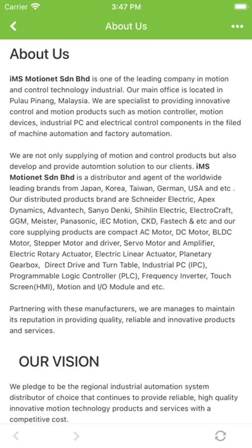 iMS Motionet Sdn Bhd is one of the leading company in motion and control technology industrial. Our main office is located in Pulau Pinang, Malaysia. We are specialist to providing innovative control and motion products such as motion controller, motion devices, industrial PC and electrical control components in the filed of machine automation and factory automation.