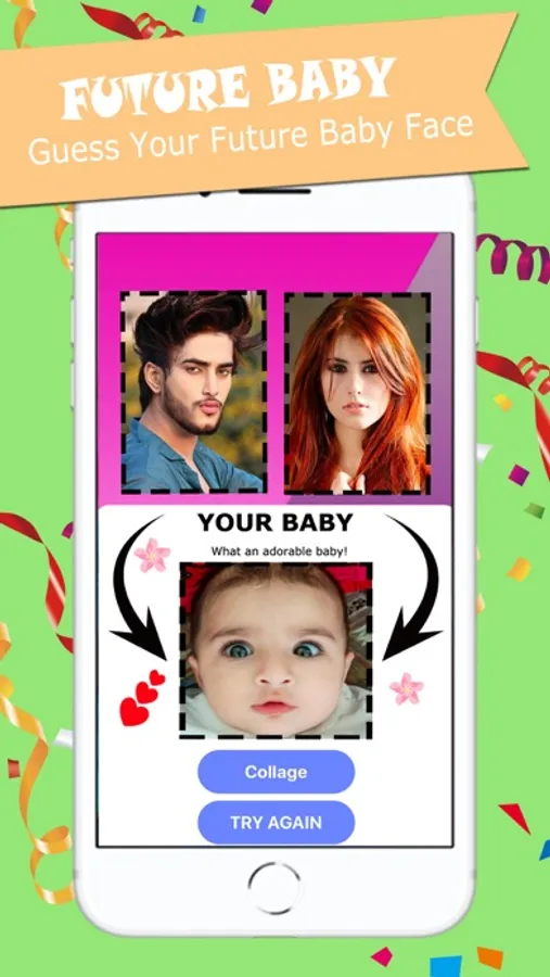 How will my future baby look like? If you have wish to see your future baby then surely guess the future baby app assists you while giving your baby picture. The foremost baby predictor after face tracking of mother and father provides baby face. Create collage for mom dad and future baby and share with friends to amaze them. Guess face and see your upcoming future baby with baby predictor app.