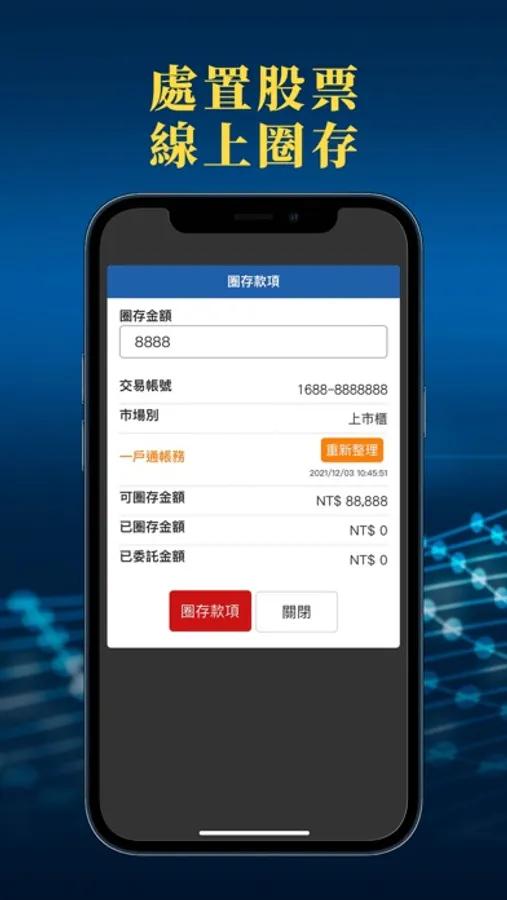 -損益查詢:顯示即時庫存、證券資產、總損益、當日損益及當沖損益等。