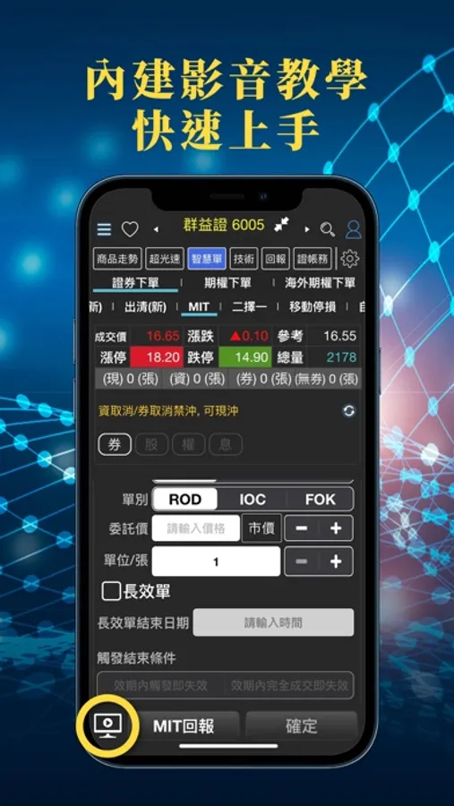 -超光速下單:直覺顯示股票行情,ROD/IOC/FOK 搭配市價/限價隨點隨下超快速。