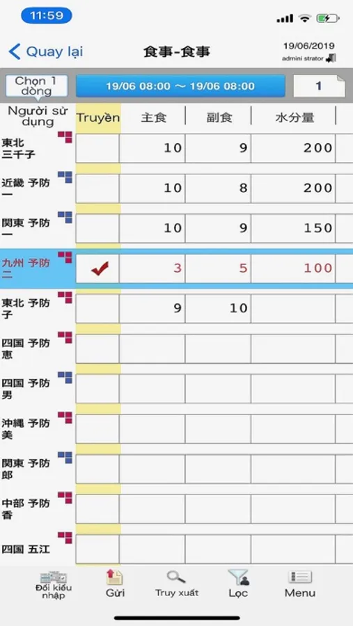 Dữ liệu ghi chép được gởi từ ứng dụng trên thiết bị di động có thể được kiểm tra và sử dụng trên phần mềm ghi chép hộ lý chăm sóc.