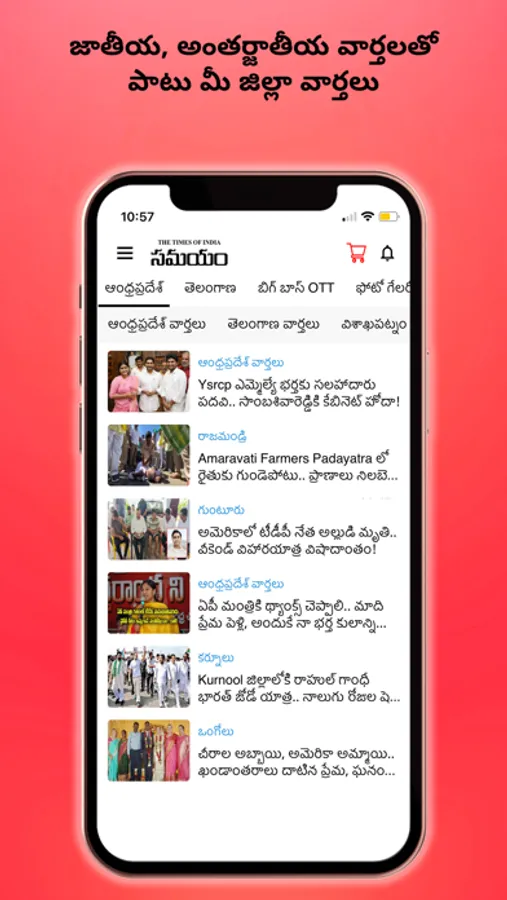 • Telugu Samayam covers the latest news including from all the cities in Andhra/Telangana including i.e. Hyderabad, Vishakhapatnam, Vijayawada, etc.