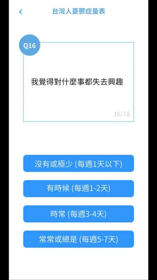 提醒您,本測驗不是診斷,有憂鬱症傾向請尋求專業協助!