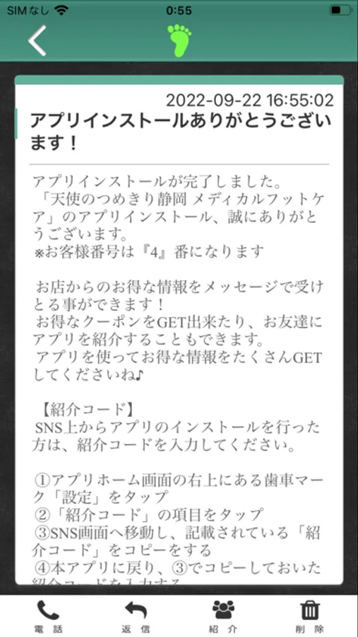 天使の爪切りのアプリをSNSを通じてお友達に紹介する事ができます。