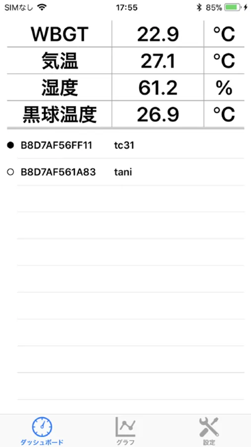 熱中症計と無線で接続して表示します。