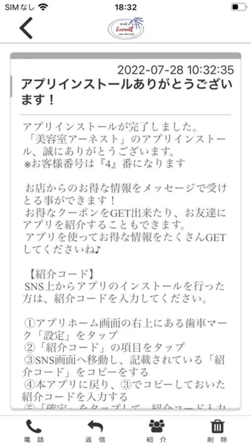 アーネストのアプリをSNSを通じてお友達に紹介する事ができます。