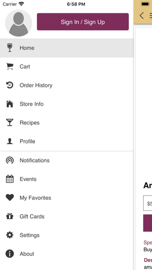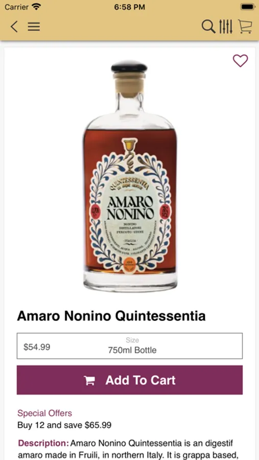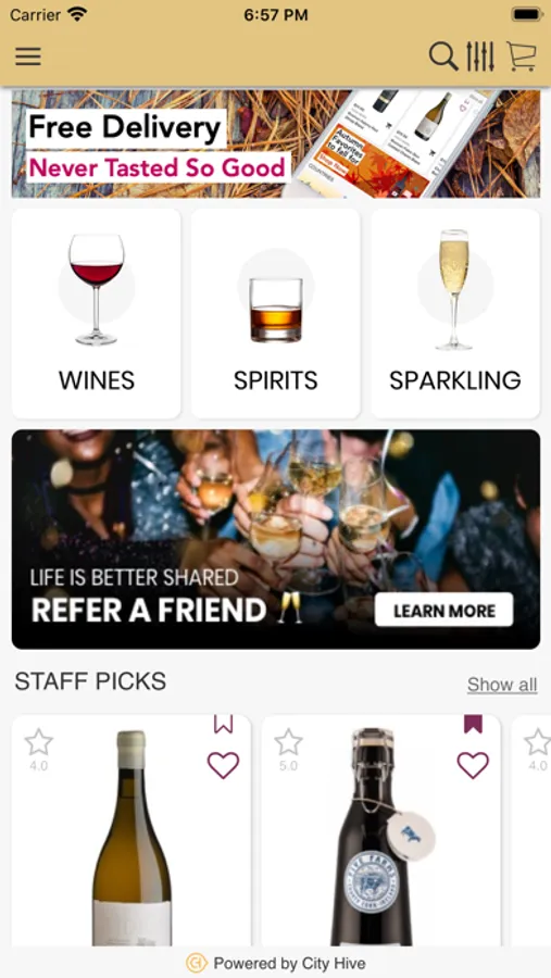 With the App you can browse for the wines & spirits available in the store, and also order a delivery or pickup.