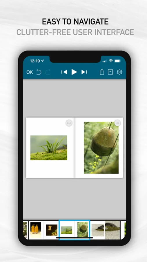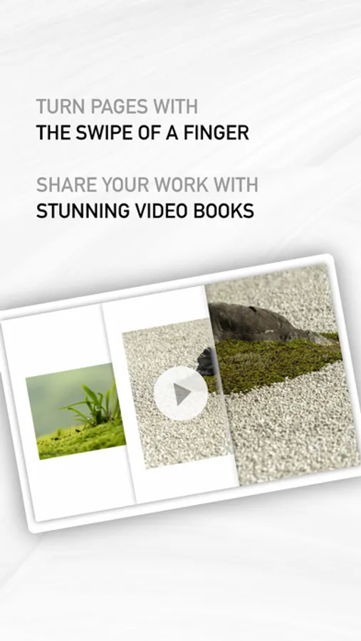 - create stunning video books with an optional sound track to share your work with friends or on social media (*)