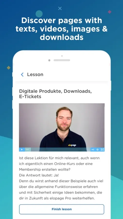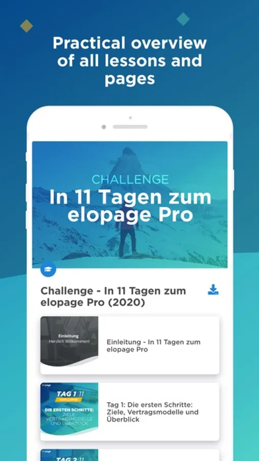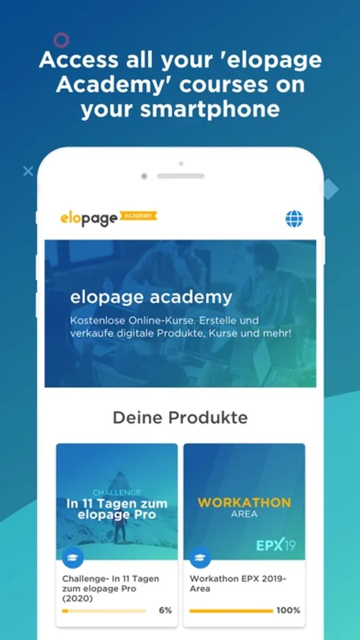 Welcome to the elopage Academy! In this app, you'll find all of our exclusive elopage courses. Additional courses from other sellers can be found in the App Store, if available. We recommend that you download them and use them separately.