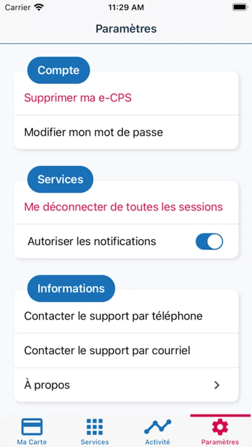 • Les caractéristiques de votre compte e-CPS.