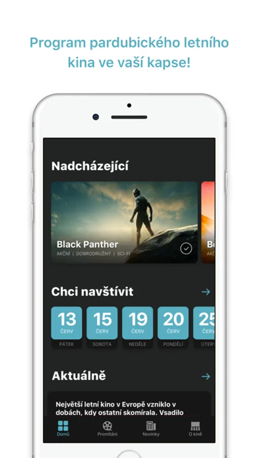 Aplikace Letní kino Pardubice je určená pro návštěvníky