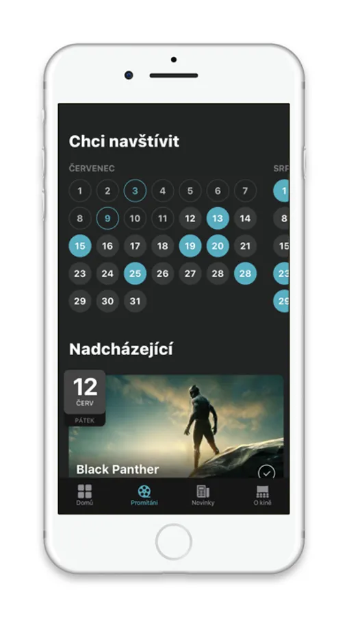 V kalendáři si můžete označit, na které filmy byste chtěli do letního kina vyrazit, a aplikace vám je připomene.