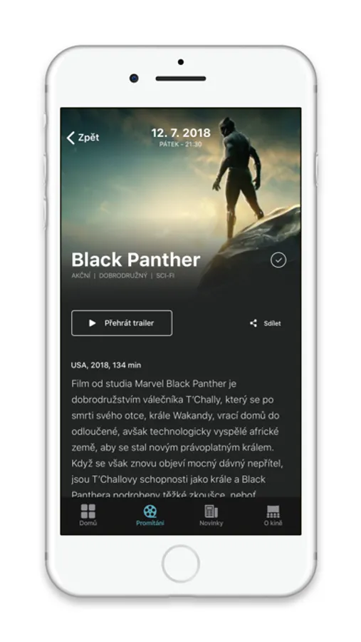 V aplikaci je k nahlédnutí program kina, stručný popis filmu a trailer.