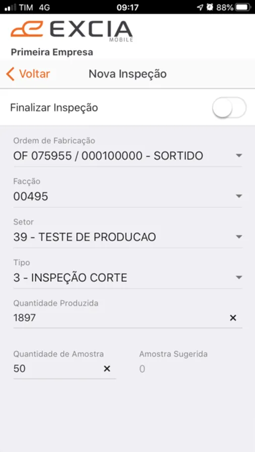 Aplicativo integrado aos sistemas da EXCIA para inspeção de produção