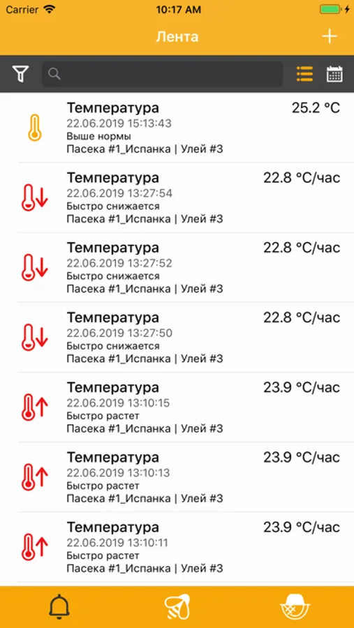 Приложение "Умный улей" фиксирует и передает полную информацию о состоянии вашей пасеки. Контроль погодных условий на пасеке - температура, влажность, ветер, осадки. Фиксация состояния каждого улья - температура, вес, звуковой спектр. Предупреждение в случае кражи или падения улья. Дневник пчеловода, с возможностью создания напоминаний то постановкой задач коллегам.