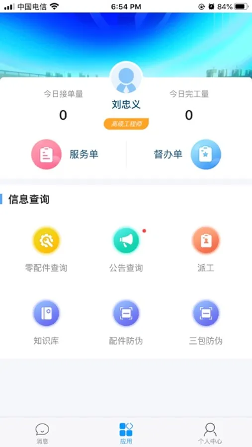 1.查看公告、服务单处理、催办单处理、配件申请、配件防伪、三包防伪、零配件查询、查看知识库、查看服务相关报表等功能