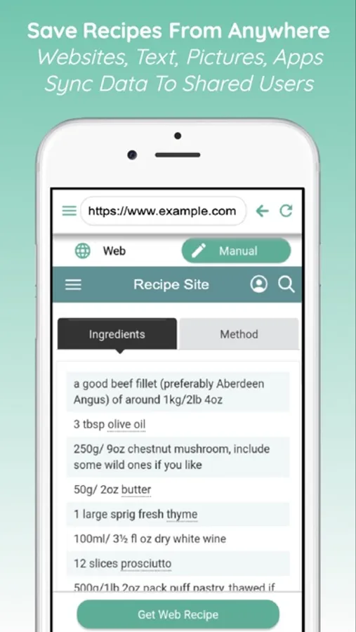 Save Recipes From Websites or Create Your Own.