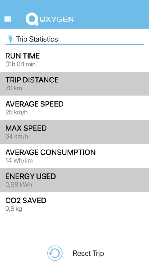 • Consult statistics: distances traveled, average speed, consumption, CO2 saved ...