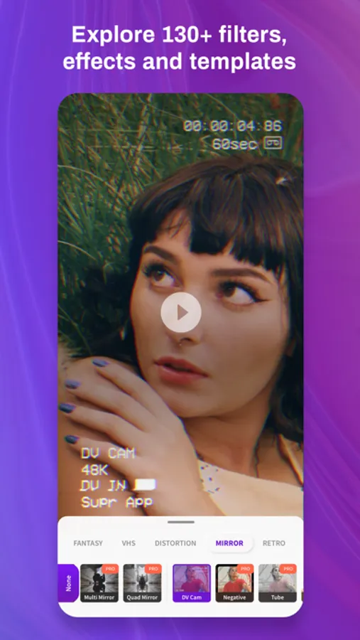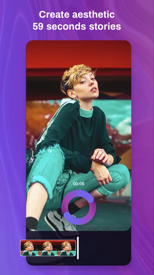 Our app is a versatile camera with multicam and stabilizer that enables you to create stories with effortless ease by offering user-friendly editing features that will result in outstanding videos of up to 59 seconds. Cut, rearrange and apply filters, effects or templates with a single tap. Use your favorite songs from iTunes and Royalty Free tracks.
