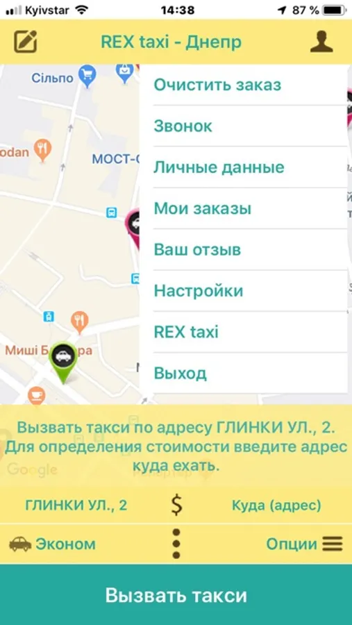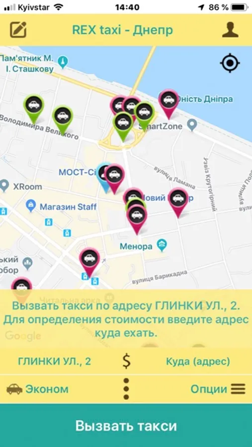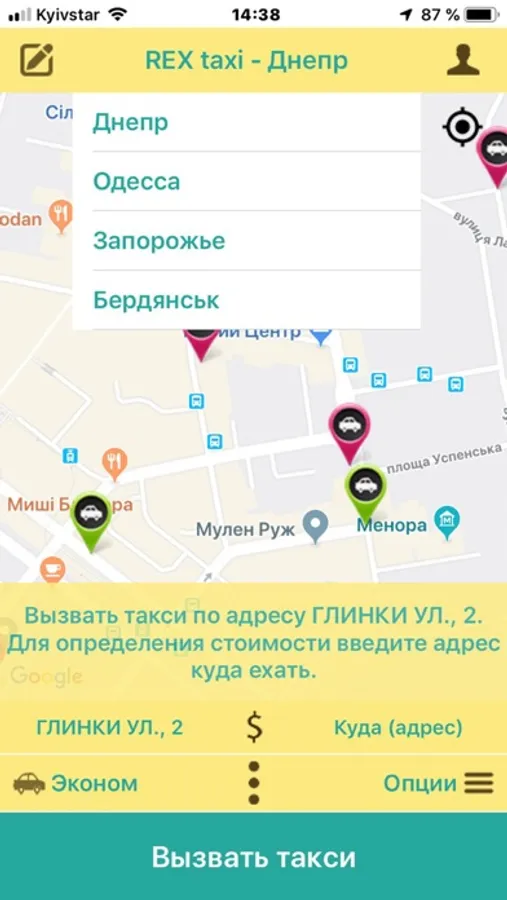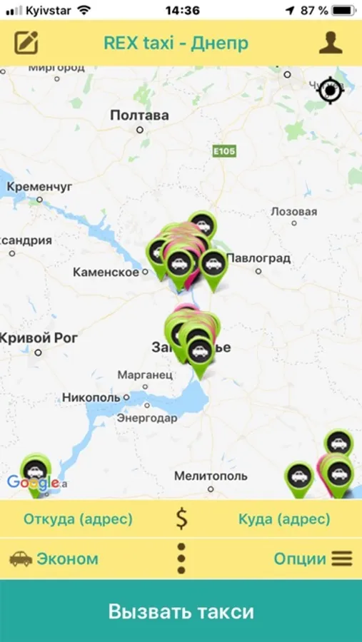 Приложение для заказа поездок на авто в г. Днепр, Одесса, Запорожье, Бердянск. Здесь вы можете заказать авто для поездок по городу без звонка оператору.