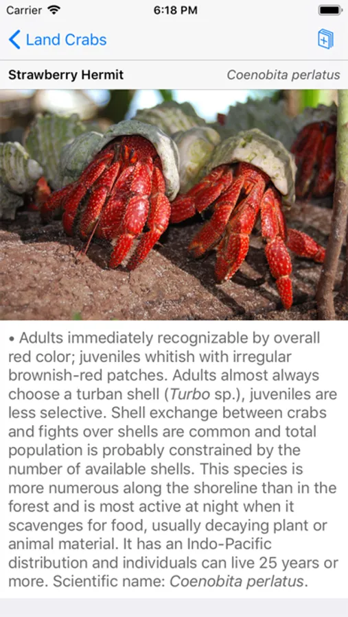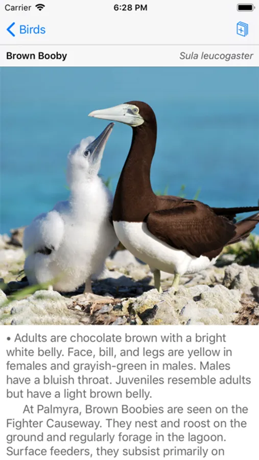 Updated April 2022. Identify fish, corals, birds, land crabs, terrestrial plants, and seaweeds of Palmyra Atoll--400+ species in all, with descriptive text and over 600 photographs. Flip through screens like pages of a book. Add sightings to Logbook. Works great on iPads too.