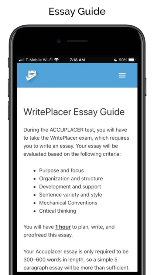 Use our Accuplacer® Test Prep App to prepare for your college placement test. It includes two full-length practice exams with 210 questions, as well as all the resources that you need to prepare for the WritePlacer Essay question.