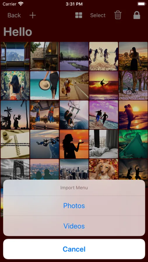 - Import & export photos, files, documents and videos from Photos Library & file manager.