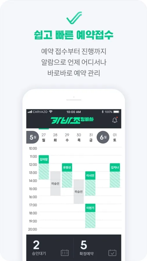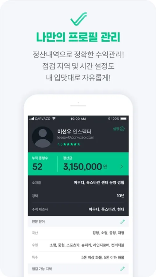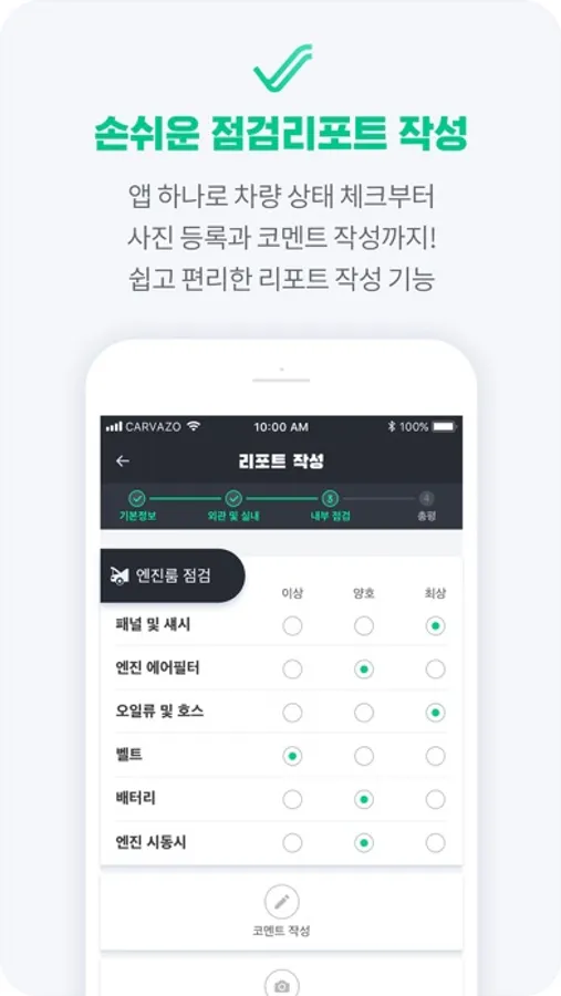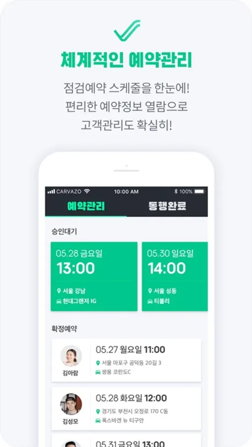카바조 정비사로 등록하거나, 정비 내역 및 리포트 작성, 고객과의 스케쥴을 조정할 수 있습니다.