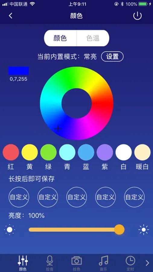Magic RGBW APP为巨泰照明研发智能灯,使用Wi-Fi模块与智能灯电控板进行集成实现照明灯的智能化,通过使用iOS手机APP进行远程控制和监控智能灯;采用Airkiss一键配置的模式,实现远程控制开关、RGB颜色调节、亮度调节、音乐律动控制、定时设置、场景设置等功能。