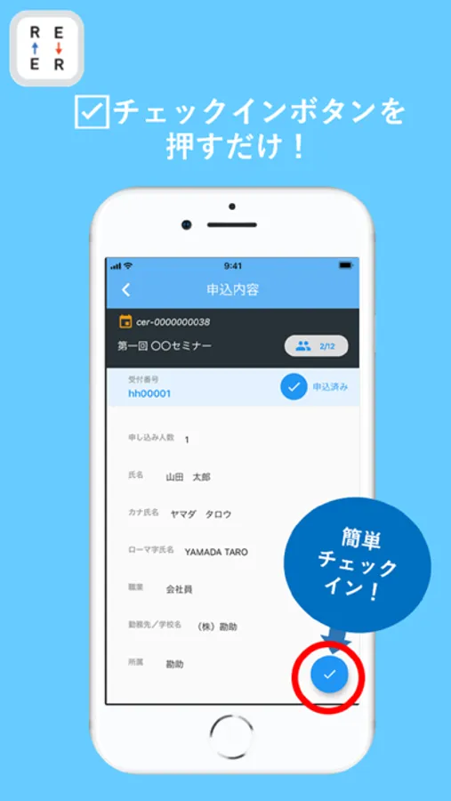 イベント申込時に表示されるQRコードをスマホのカメラで読み込むだけで、誰でも簡単に受付を行うことができます。
