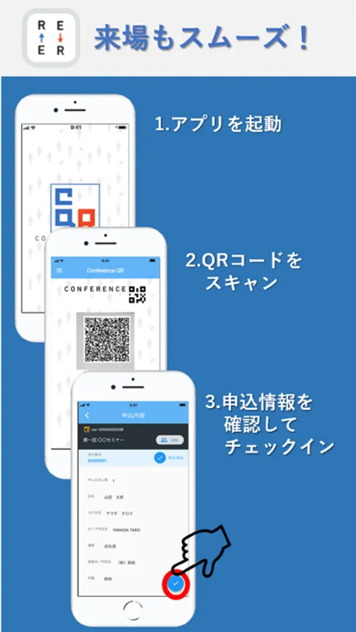 Conference QRを使えば、QRコードによるスムーズな受付が可能です。