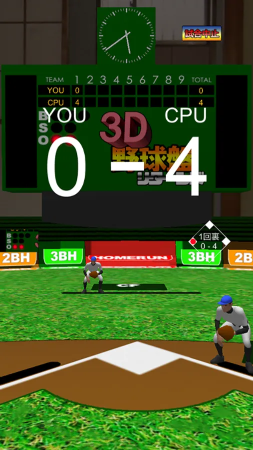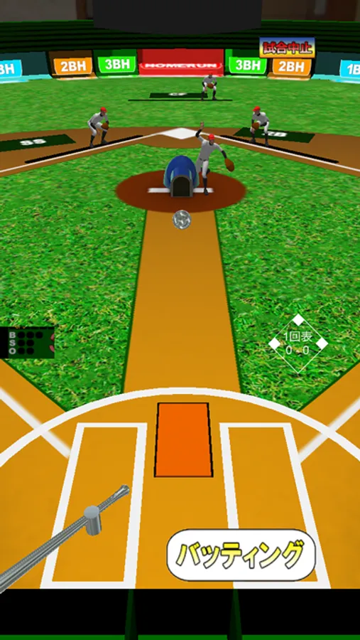 「バッティング」ボタンでバットを振ります。強さの調整はありません。