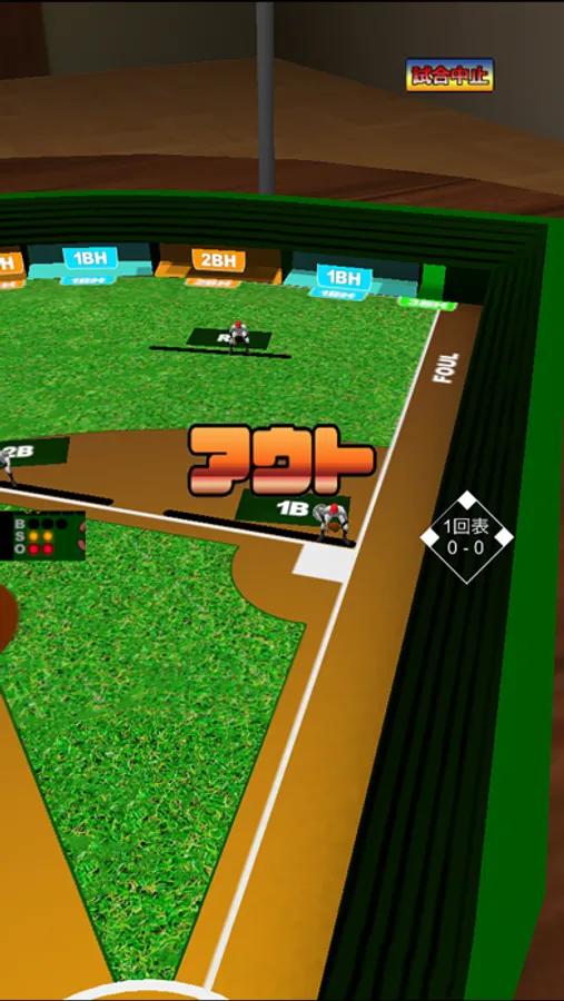 野球盤はどこにボールが到達したかで、判定されます。ですのでどこにも到達しないでボールが停止した場合はノーカンとして判定無しになります。