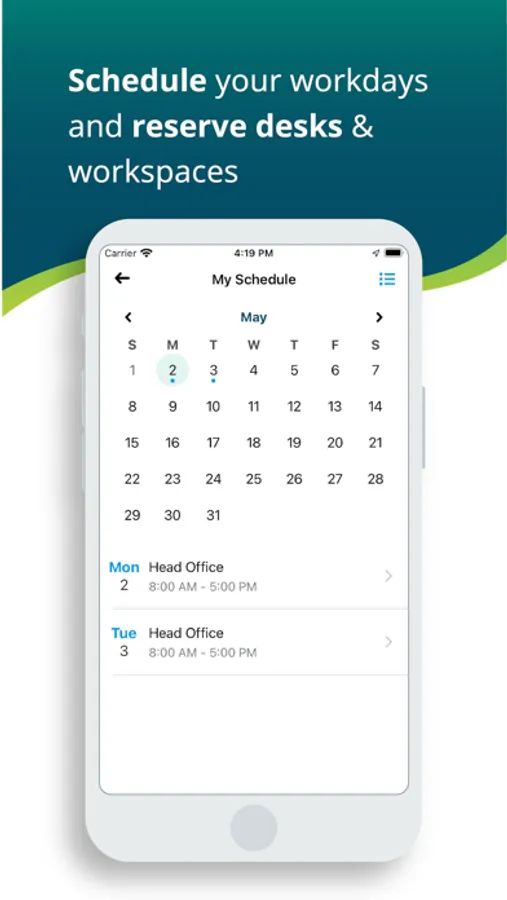 Schedule your working days, weeks, or months in advance before coming on-site, allowing your organization to create a flexible workplace and ensure spaces are available.