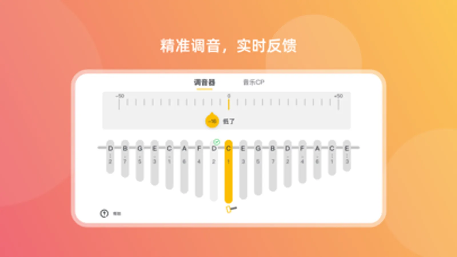 这是一款专门为拇指琴打造的调音器,精准识别,实时反馈。