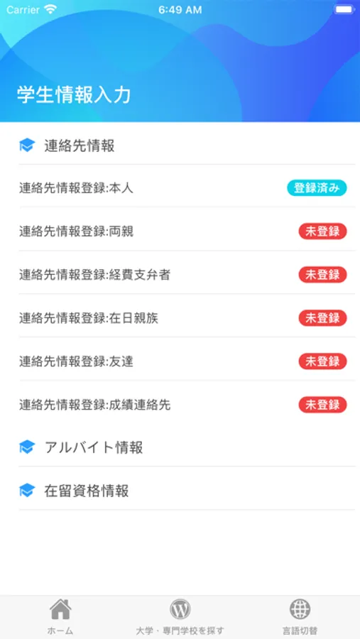 日本へ留学するために、エージェントや日本語学校が提出する入管申請資料の情報を申請者本人がスマホアプリを使って、入力できます。