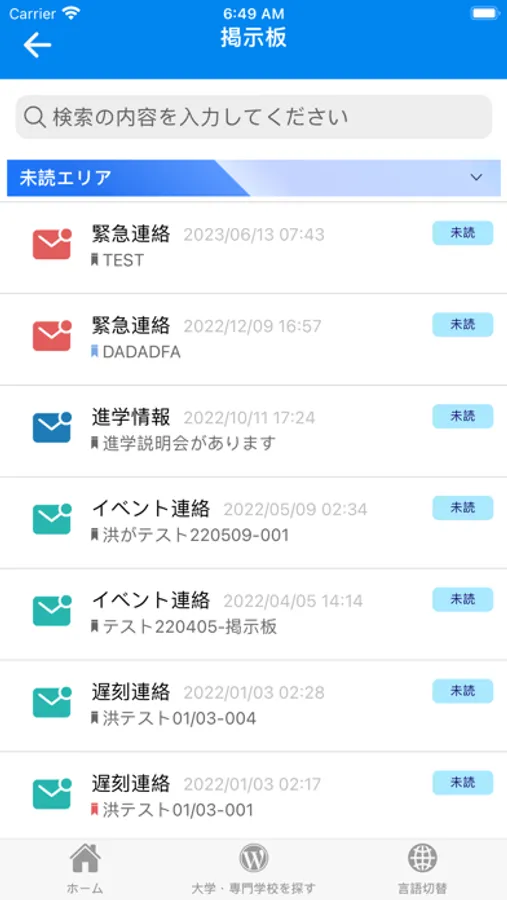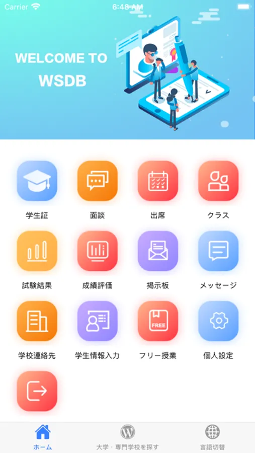 国際学生管理システムWSDBの学生用スマホアプリ。