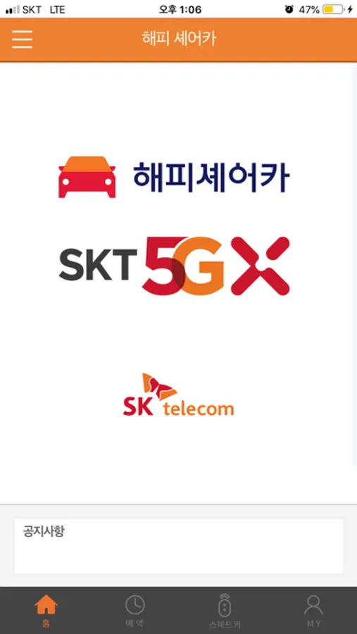 해피셰어카는 스마트폰을 통한 편리한 예약 / 사용승인이 되며,