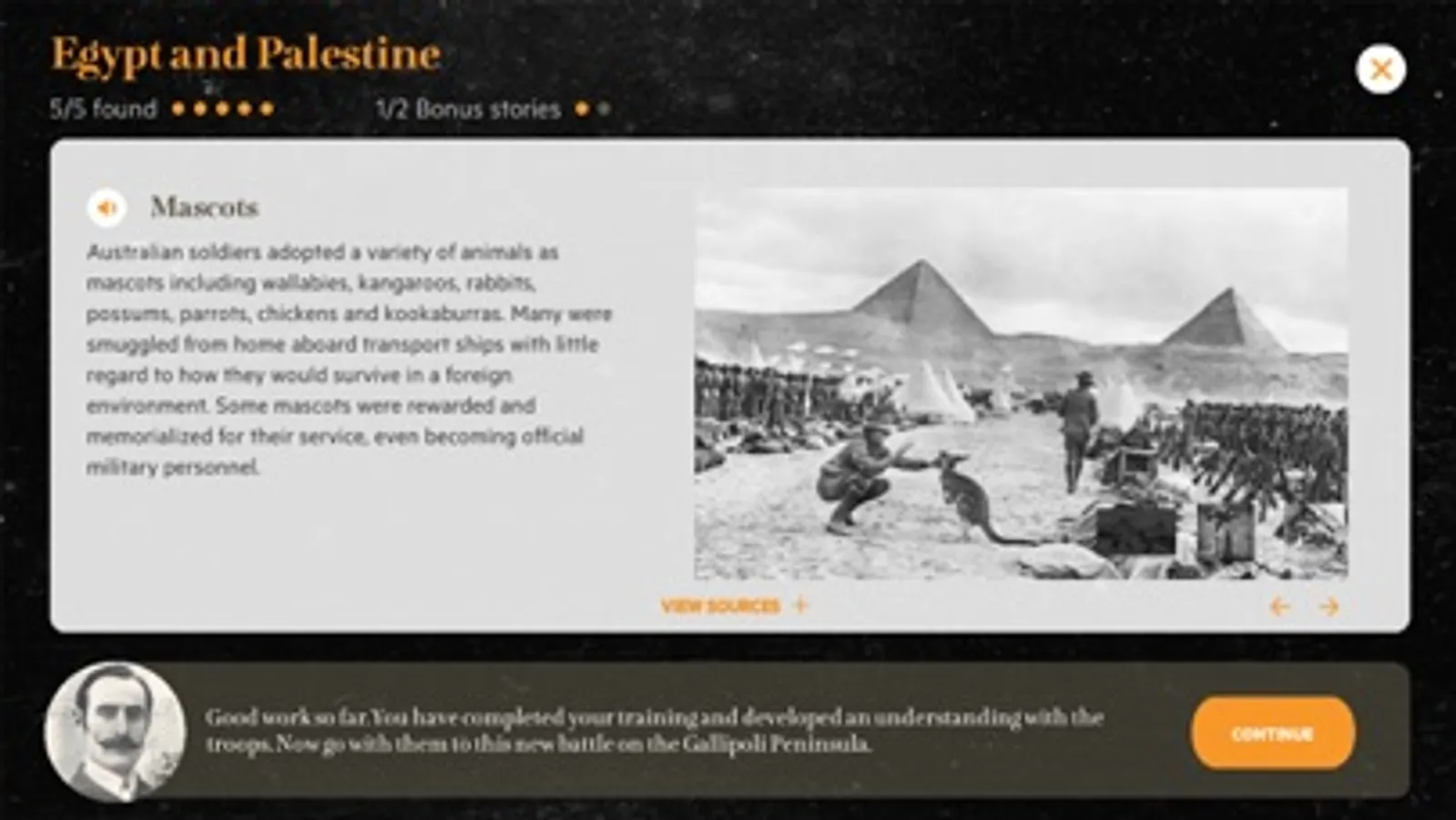 An immersive and innovative experience means students are kept engaged for longer, and the intuitive navigation allows students to direct their own learning experience. Primary sources used within ANZAC Correspondent give insight into different historical perspectives and provide valuable opportunities for further research.