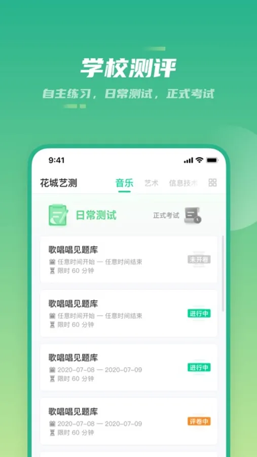 花城艺测APP由花城出版社打造,是一款以音乐测评为核心功能的音乐学习类软件。音频自动评分是它的一大特色功能。
