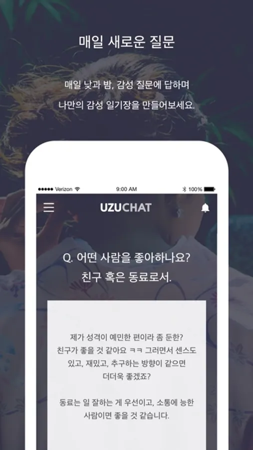 1. 오늘의 질문 : 매일 오전 8시, 오후 8시에 인생을 돌아볼 수 있는 질문이 배달됩니다. 매일 새로운 질문에 답하며 나만의 일기장을 만들어보세요.