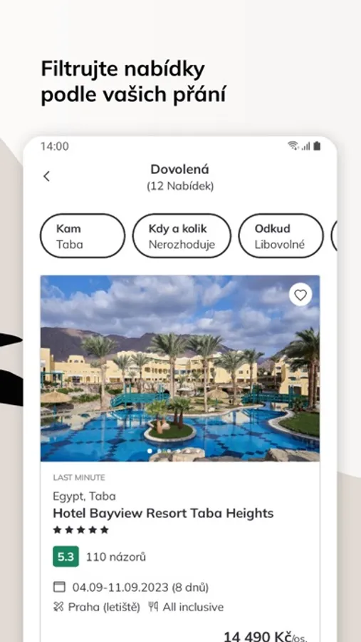 Splňte si své cestovatelské sny, ať už jste kdekoli. Výhodnou dovolenou pořídíte z pohodlí domova nebo cestou do práce. Nyní rychleji, plynuleji a s pokročilým filtrováním nabídek.
