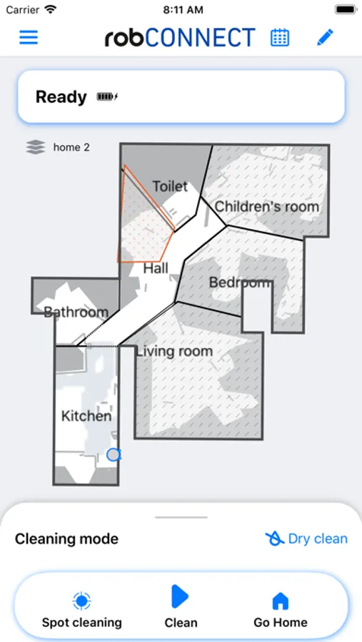With the ROB-Connect App, you can set virtual boundaries (No-Go Areas) for whole rooms or specific places to tell your robot where not to go.