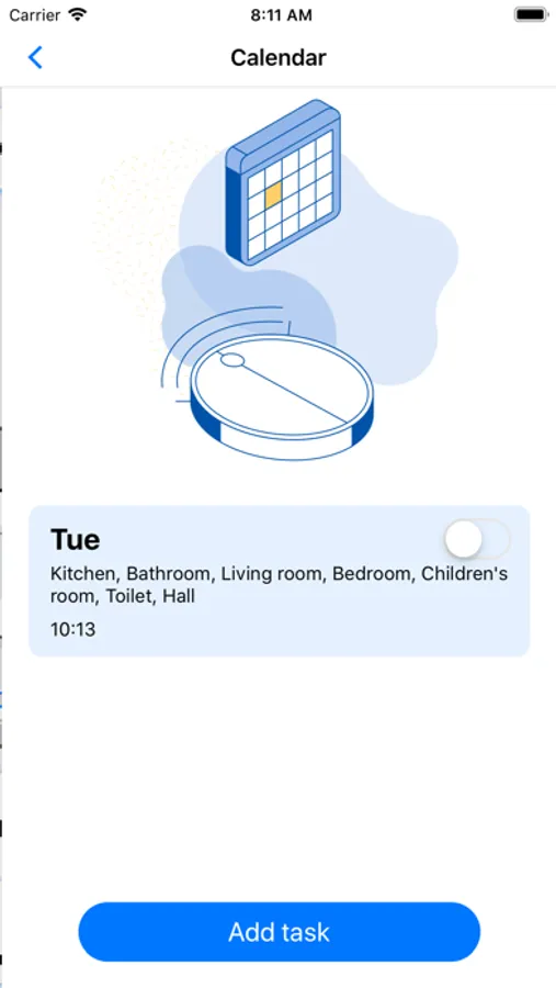 Set a regular schedule for daily cleaning via ROB-Connect App. Set up the time and date in the calendar and the robot will start the scheduled cleaning automatically.