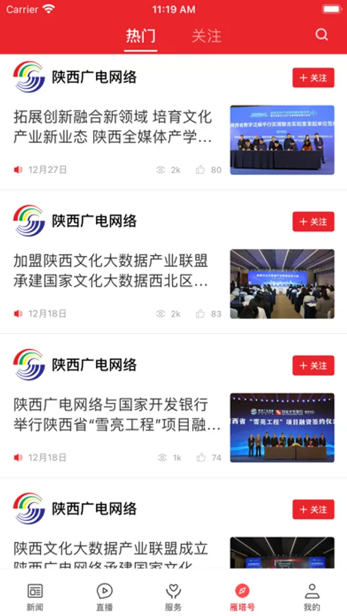 “爱雁塔”手机APP作为雁塔区融媒体中心主办的“新闻+政务+服务”综合平台,是权威的舆论宣传主阵地。开设了新闻、直播、服务、“雁塔号”等栏目,整合了区域内网站、微信、微博、短视频等自媒体和部门、社区、街道政务服务资源。用户可通过客户端,第一时间了解雁塔政治、经济、民生、服务等方面的最新动态,同时提供各种便民服务,还可参与实时互动,实现“一端在手,尽享智慧”。