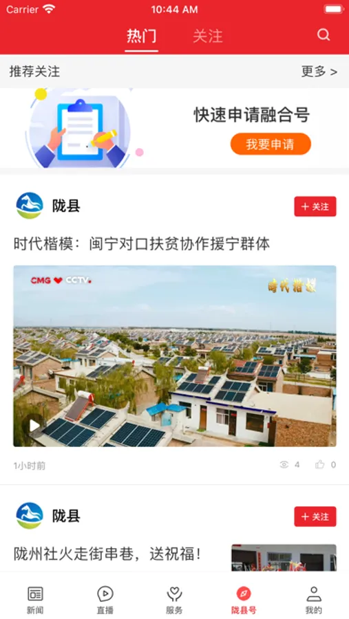 “爱陇县”手机APP作为陇县融媒体中心主办的“新闻+政务+服务”综合平台,是权威的舆论宣传主阵地。开设了新闻、直播、电视、广播、服务、“陇县号”等栏目,整合了县域内网站、微信、微博、短视频等自媒体和部门、镇(办)、社区、村组政务服务资源。用户可通过客户端,第一时间了解陇县政治、经济、民生、服务等方面的最新动态,同时提供各种便民服务,还可参与实时互动,实现“一端在手,尽享智慧”。