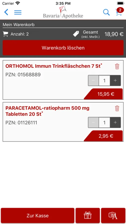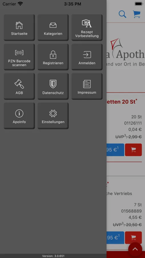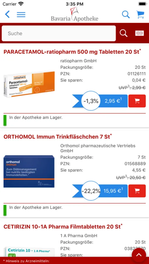 Vorrätigkeitsabfrage mit der App. Scanfunktionen von Arzneimittelpackungen.