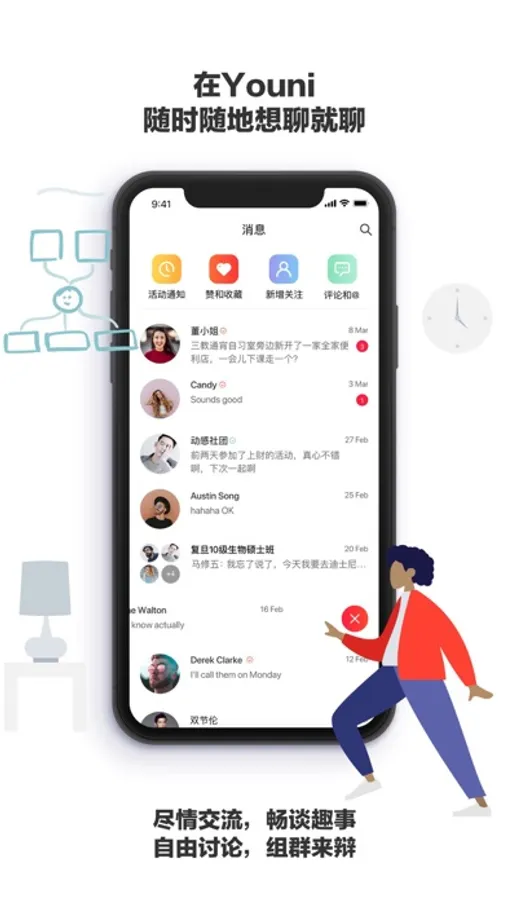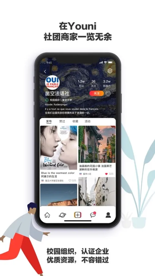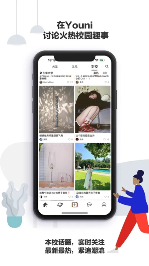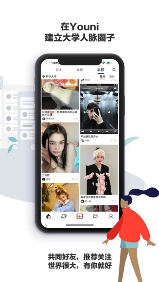 「校友ta在这里」好友算法推荐功能,在Youni轻松建联大学同学,关注高校帅哥美女,建立属于自己的人脉圈。