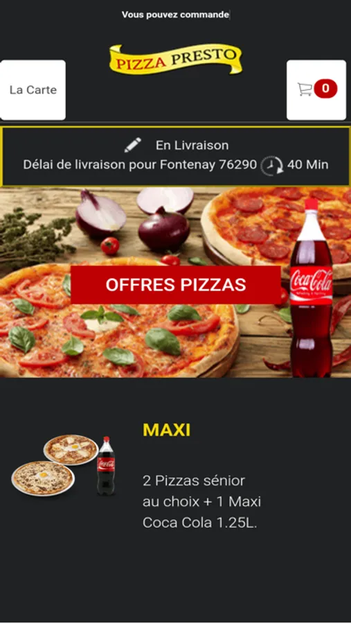 L'application Pizza Presto Montivilliers vous permet de commander en ligne ou par téléphone via votre application . Vous pouvez consulter notre carte et choisir vos produits .