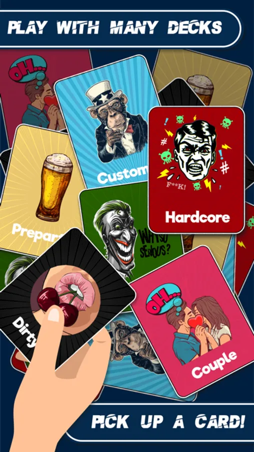 Thousands of "Never Have I Ever" cards with content categorized by themes: